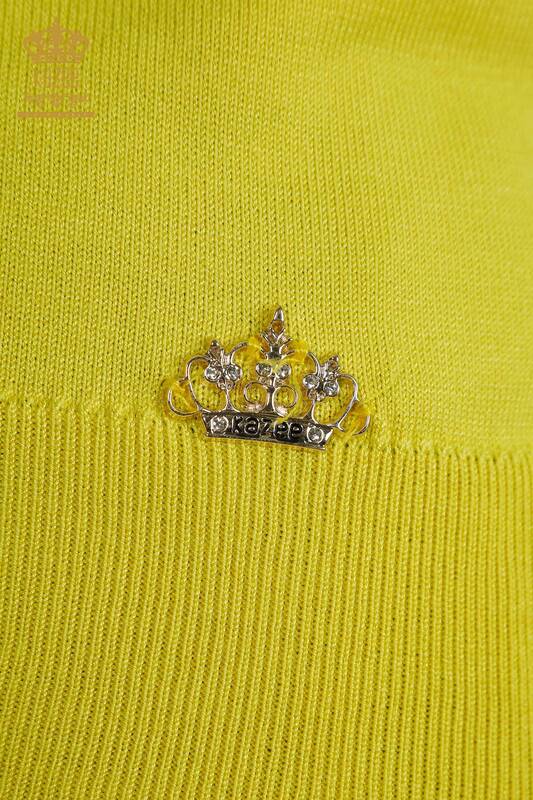 Großhandel Damen-Strickpullover Basic Logo Rundhalsausschnitt Gelb - 11052 | KAZEE