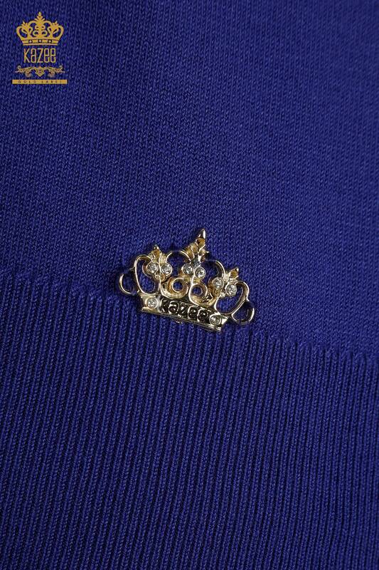 الجملة المرأة سترة تريكو الأساسية الشعار طاقم الرقبة البنفسجي - 11052 | كازي