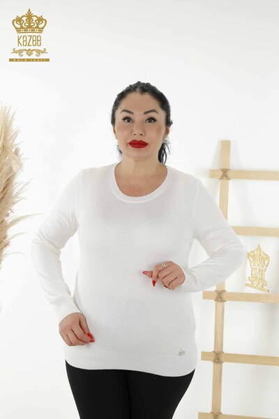 Grossiste Pull en Tricot pour Femmes Basic Logo Crew Neck Vison - 30213 | KAZEE