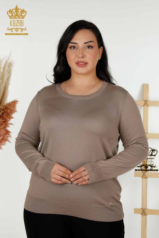 Grossiste Pull Femme - Basique - Avec Logo - Vison - 30213 | KAZEE