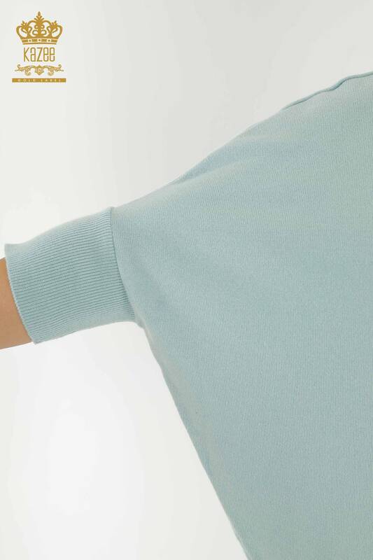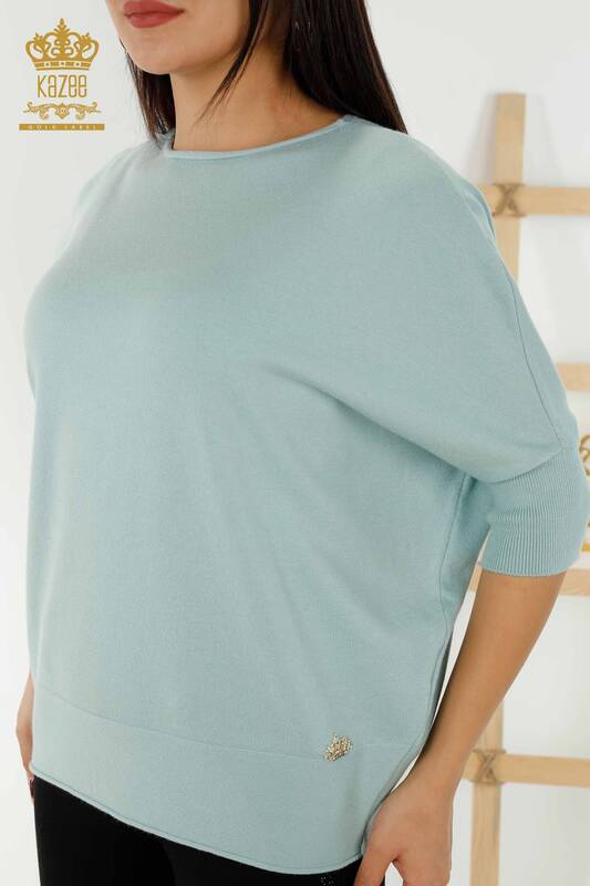 Toptan Kadın Triko Kazak Basic Logolu Yarasa Kol Mint - 30241 | KAZEE