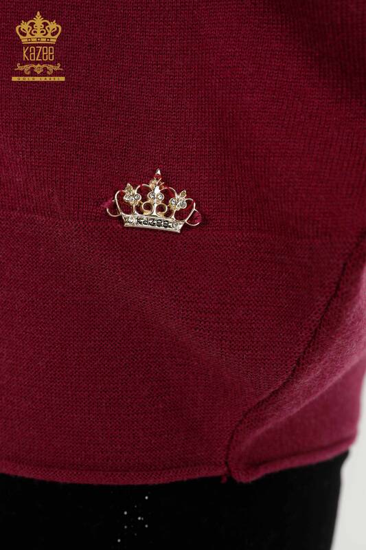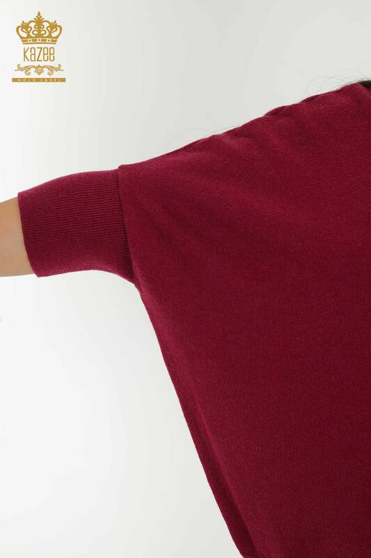 Toptan Kadın Triko Kazak Basic Logolu Yarasa Kol Mürdüm - 30241 | KAZEE