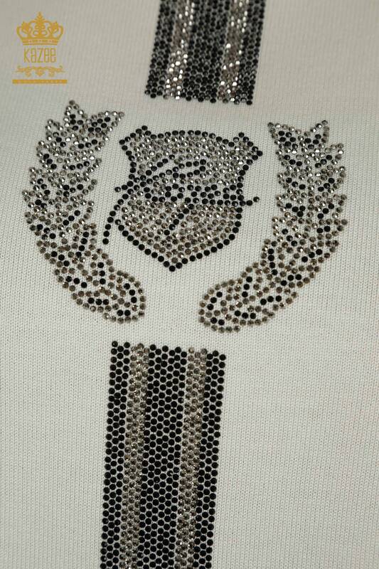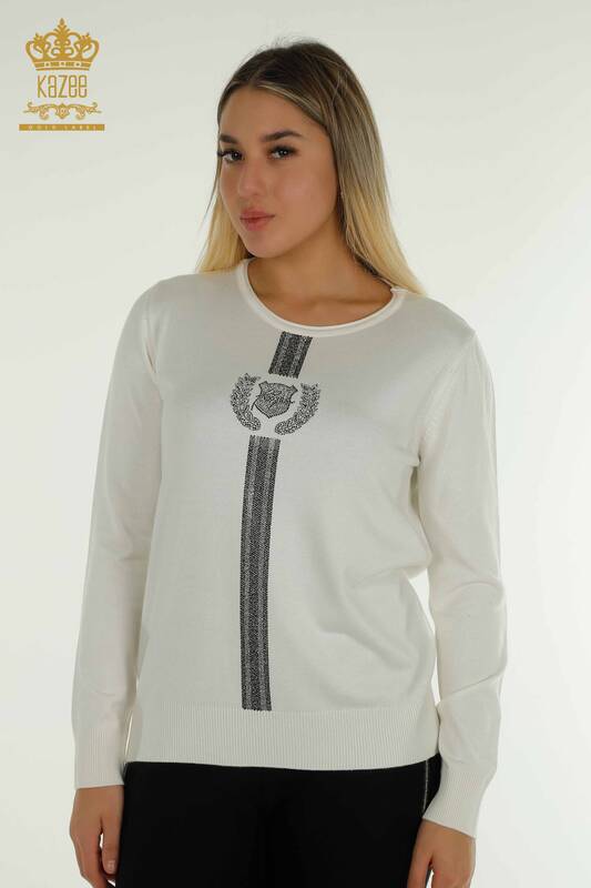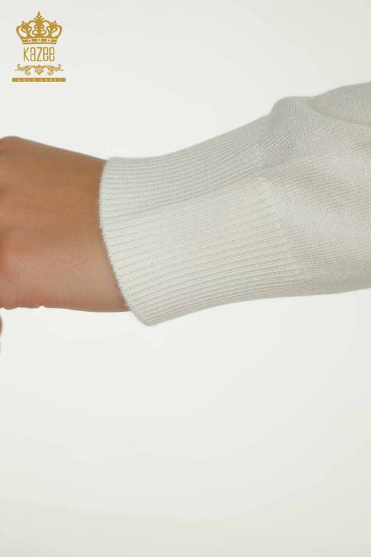 Toptan Kadın Triko Kazak Bisiklet Yaka Taş İşlemeli Ekru - 30457 | KAZEE