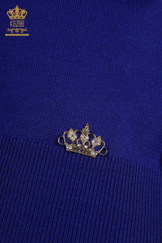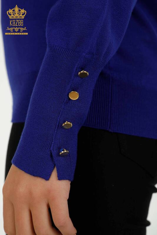 Toptan Kadın Triko Kazak Kol Düğme Detaylı Basic Saks - 30508 | KAZEE