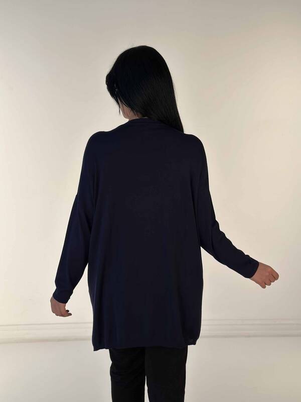 Maglieria da donna all'ingrosso Tasca maglione girocollo con pietre ricamate blu navy - 30622 | KAZEE
