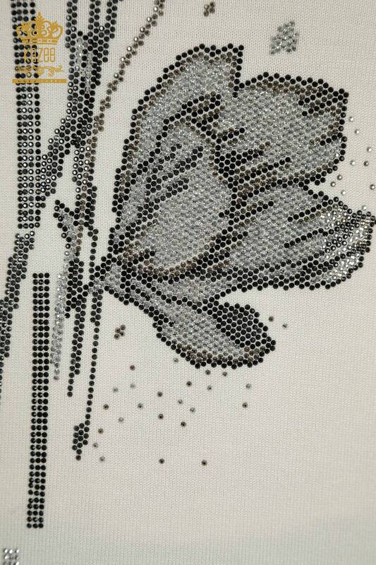 Pulover de tricotaje pentru femei cu ridicata - Floral Motiv - Ecru - 30656 | KAZEE