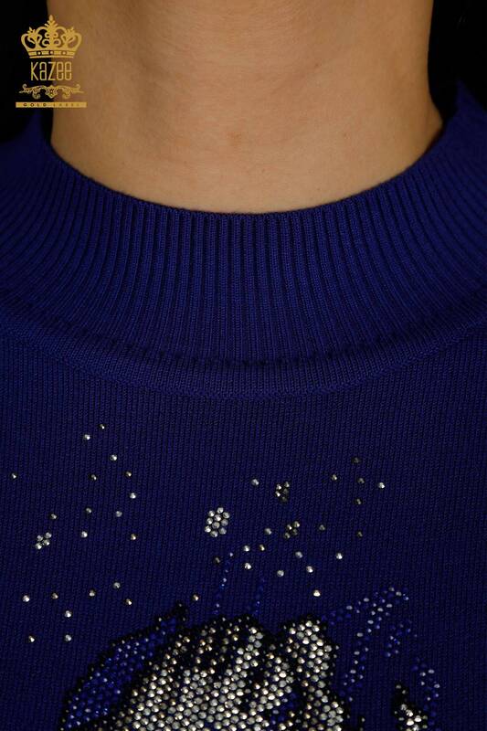 الجملة المرأة سترة تريكو الأزهار منقوشة حجر مطرز كم طويل ساكس - 30656 | كازي
