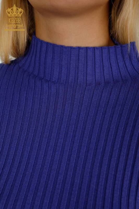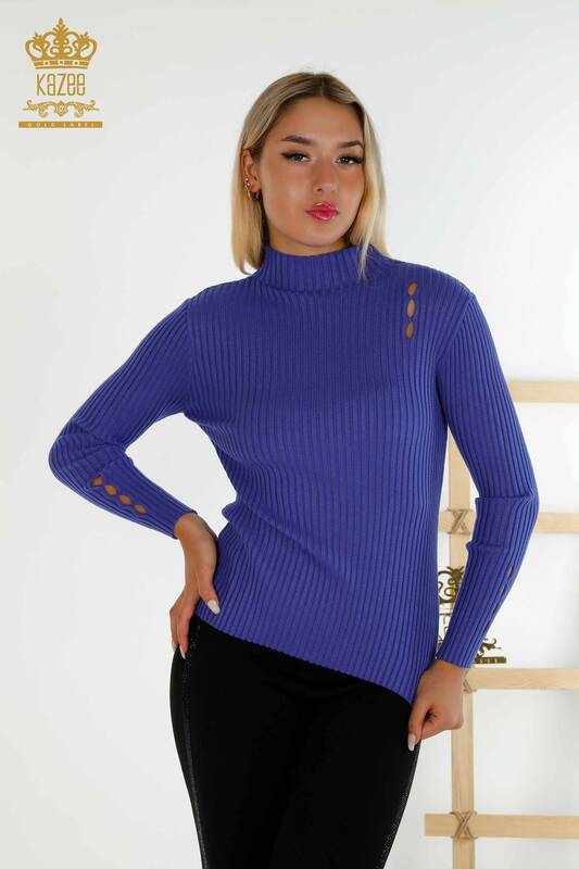 Toptan Kadın Triko Kazak Delik Detaylı Dik Yaka Violet - 30395 | KAZEE