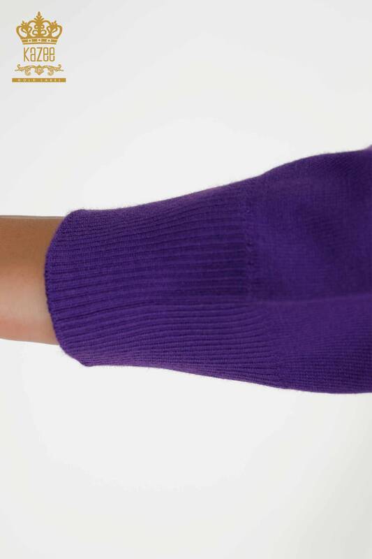 Maglieria da donna all'ingrosso maglione collo alto basic viola - 16663 | KAZEE