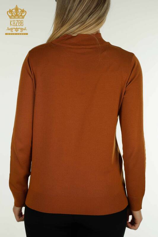 Toptan Kadın Triko Kazak Dik Yaka Basic Taba - 30613 | KAZEE