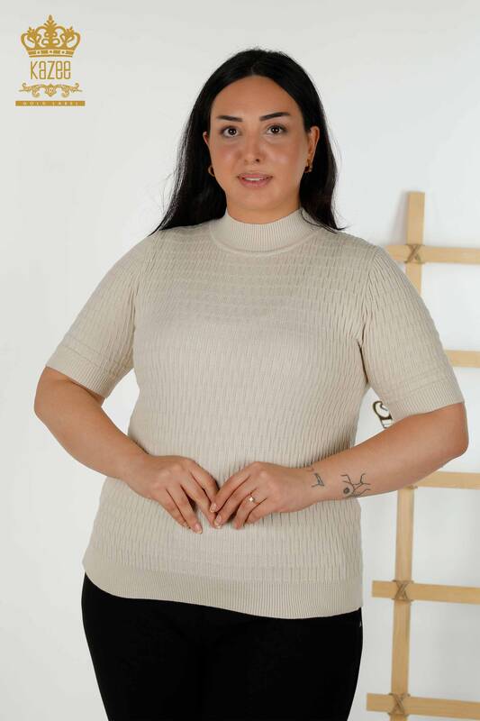 оптовая продажа женский трикотаж свитер стоячий воротник самотканый бежевый - 30338 | КАЗЕЕ