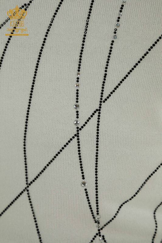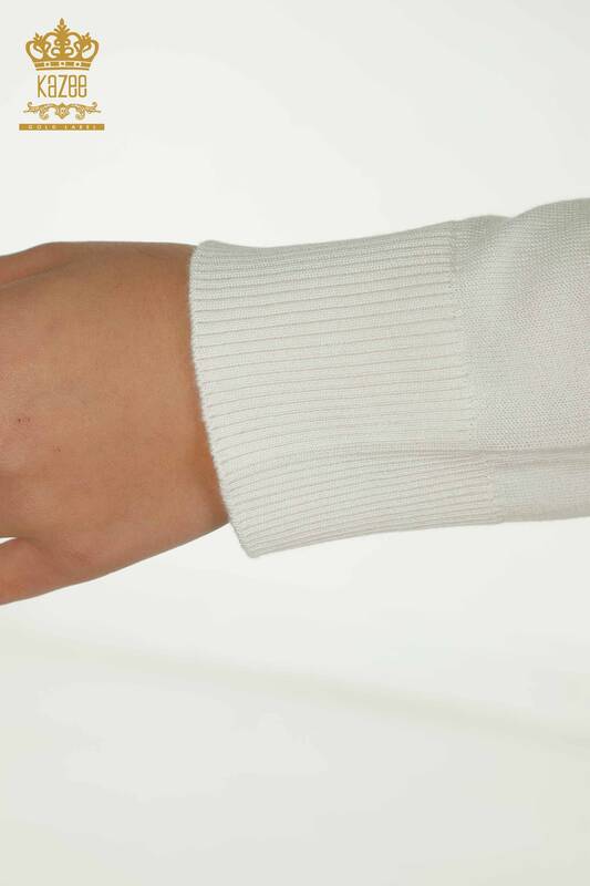 Toptan Kadın Triko Kazak Dik Yaka Taş İşlemeli Uzun Kol Ekru - 30454 | KAZEE