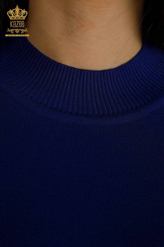 Toptan Kadın Triko Kazak Dik Yaka Saks - 30642 | KAZEE