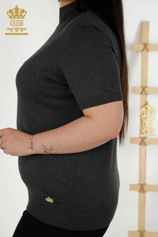 Toptan Kadın Triko Kazak Dik Yaka Viskon Füme - 16168 | KAZEE