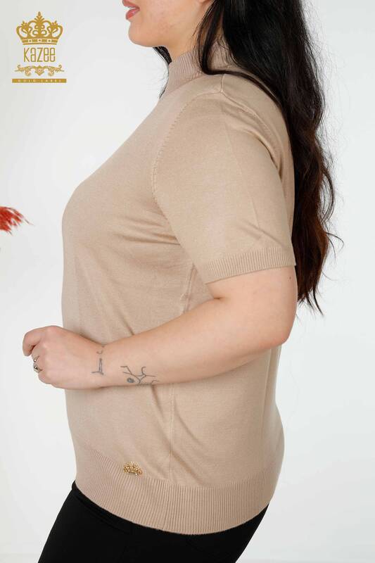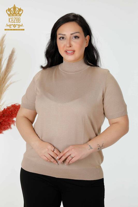 Toptan Kadın Triko Kazak Dik Yaka Viskon Koyu Bej - 16168 | KAZEE