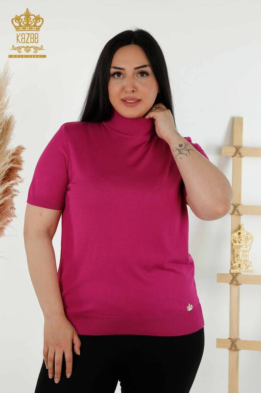 Оптовая Женщин Трикотаж Свитер Американская Модель Воротник Стенд Вискоза Темно-Фуксия - 16168 | КАЗЕЕ
