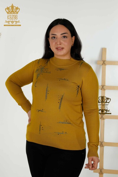 Wholesale Women's Knitwear Sweater American Model Stand Collar Viscose Blue - 16168 | KAZEE