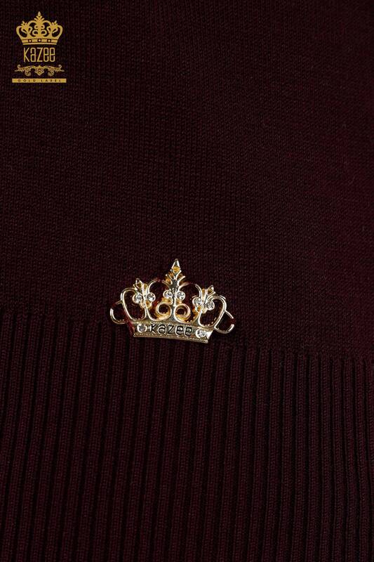 Toptan Kadın Triko Kazak Amerikan Model Dik Yaka Viskon Mürdüm - 16168 | KAZEE