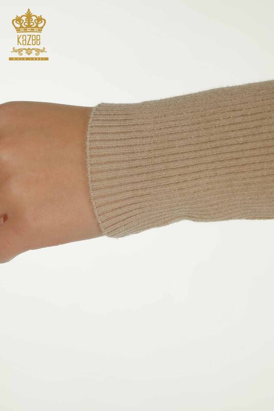 Toptan Kadın Triko Kazak Düğme Detaylı Bej - 30364 | KAZEE