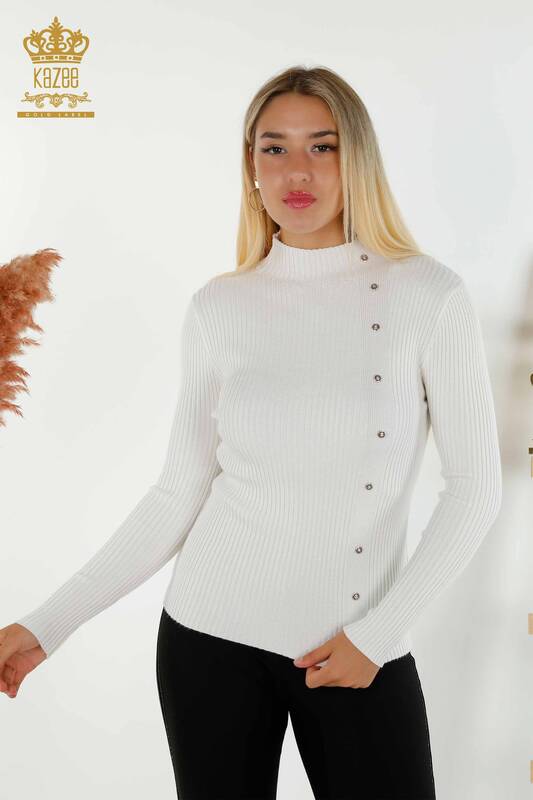 الجملة المرأة سترة تريكو زر مفصل الوقوف الياقة إكرو - 30394 | كازي