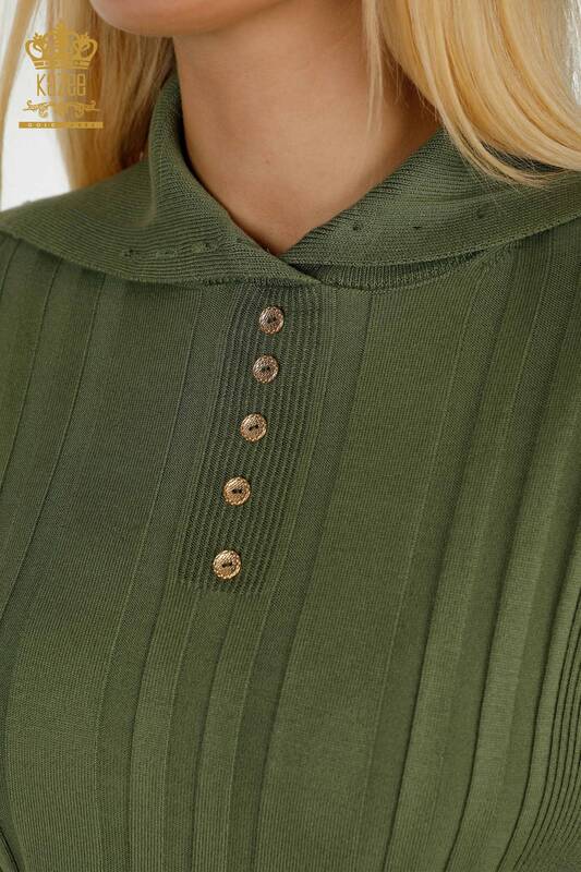 Toptan Kadın Triko Kazak Düğme Detaylı Haki - 30134 | KAZEE