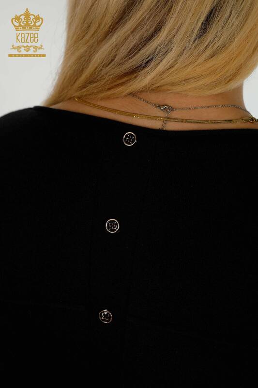Großhandel Damen-Strickpullover, Knopfdetail, zwei Taschen, Schwarz – 30178 | KAZEE