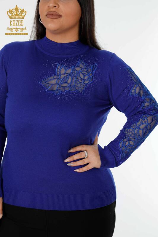 оптом Женский трикотаж Свитер Тюль Детальный камень Вышитые розы Узорчатые Saks - 16832 | КАЗЕЕ