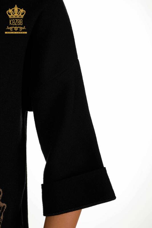 Venta al por mayor Suéter de Punto para Mujer Dos Colores Rosa Bordada Piedra Bordada Negro - 30197 | KAZEE