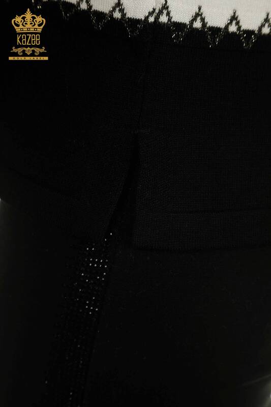 Toptan Kadın Triko Kazak İki Renk Siyah Ekru - 30351 | KAZEE