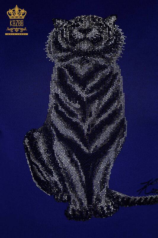 Maglieria da donna all'ingrosso Maglione Tiger Pattern Stone Ricamato Saks - 30127 | KAZEE