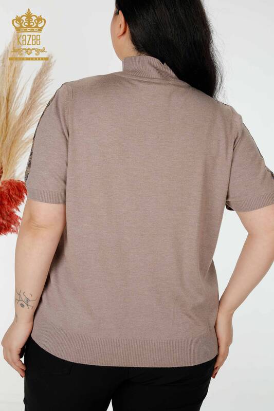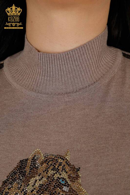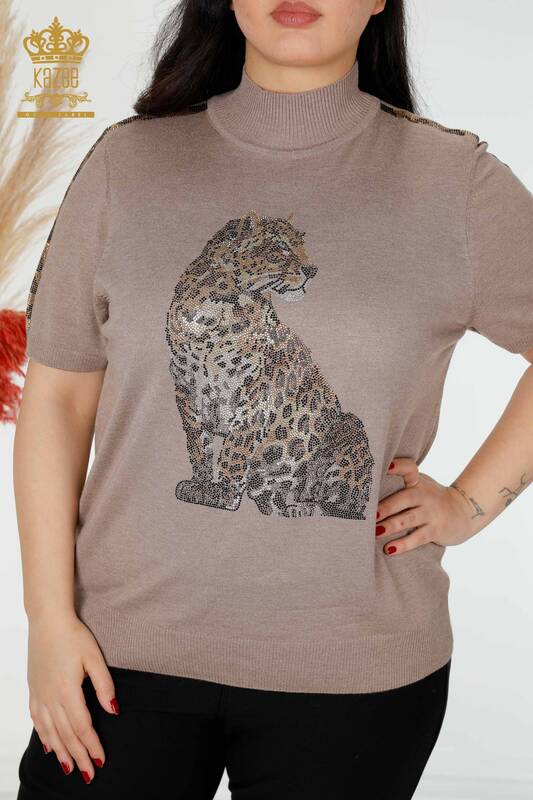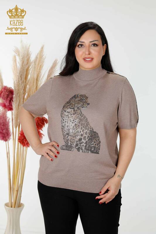 عمده فروشی ژاکت بافتنی زنانه با الگوی ببر دوزی سنگی سمور یا راسو - 16999 | کازی