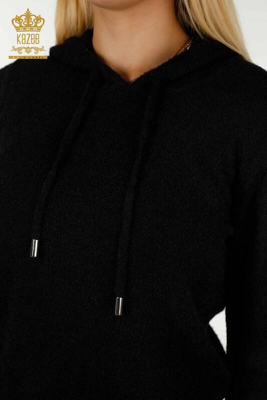 Toptan Kadın Triko Kazak Kapüşonlu Siyah - 40006 | KAZEE