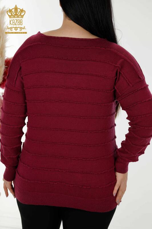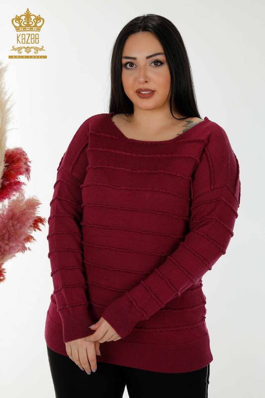 оптовая продажа Женский трикотажный свитер с круглым вырезом сливовый - 30169 | КАЗЕЕ