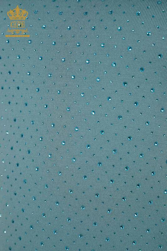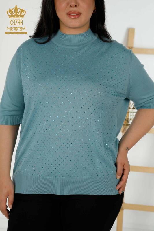 Toptan Kadın Triko Kazak Kısa Kol Taş İşlemeli Mint - 16950 | KAZEE