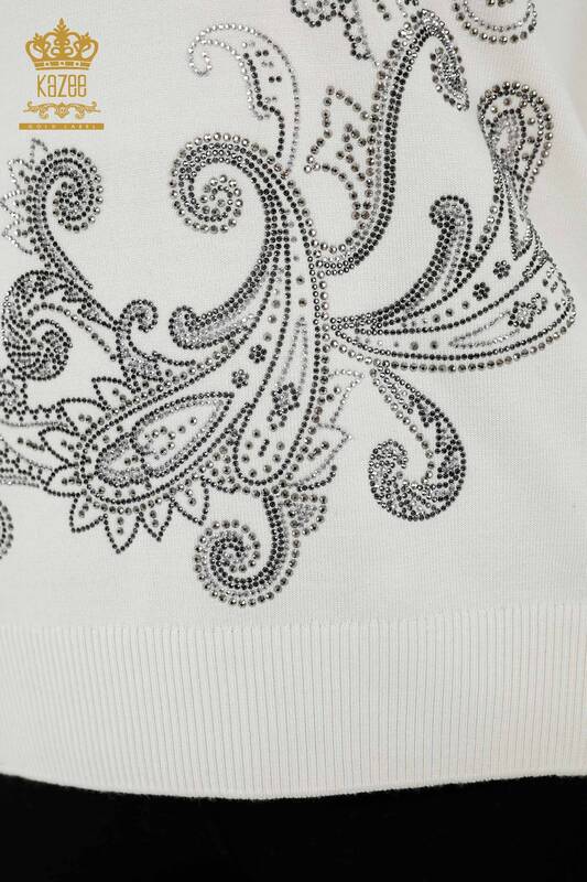 Venta al por mayor Suéter de Punto para Mujer Estampado con Piedras de Cristal Crudo Bordado - 30013 | kazee