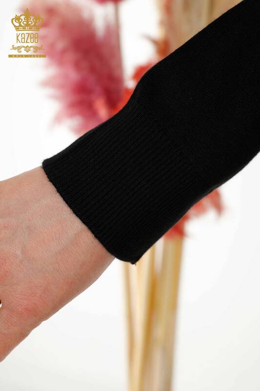 فروش عمده ژاکت بافتنی زنانه کریستال سنگ دوزی مشکی طرح دار - 16964 | KAZEE