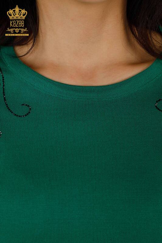 Toptan Kadın Triko Kazak Kristal Taş İşlemeli Yeşil - 30210 | KAZEE