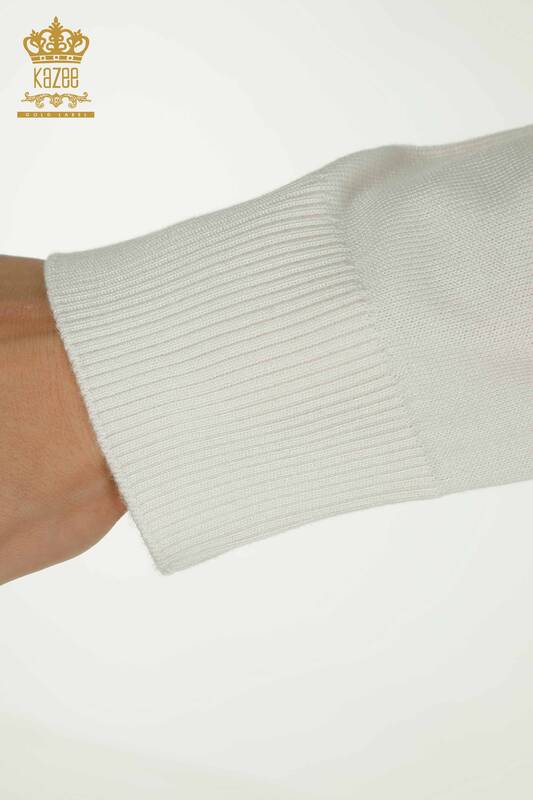Toptan Kadın Triko Kazak Kuş Nakışlı Ekru - 30401 | KAZEE