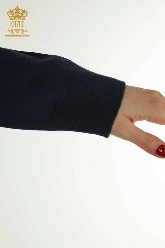 Toptan Kadın Triko Kazak Omuz Çiçek Detaylı Lacivert - 30542 | KAZEE