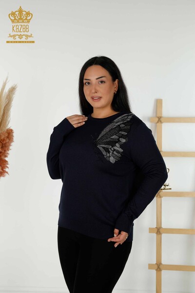 الجملة المرأة سترة تريكو ملونة جيب طاقم الرقبة ساكس - 30108 | كازي