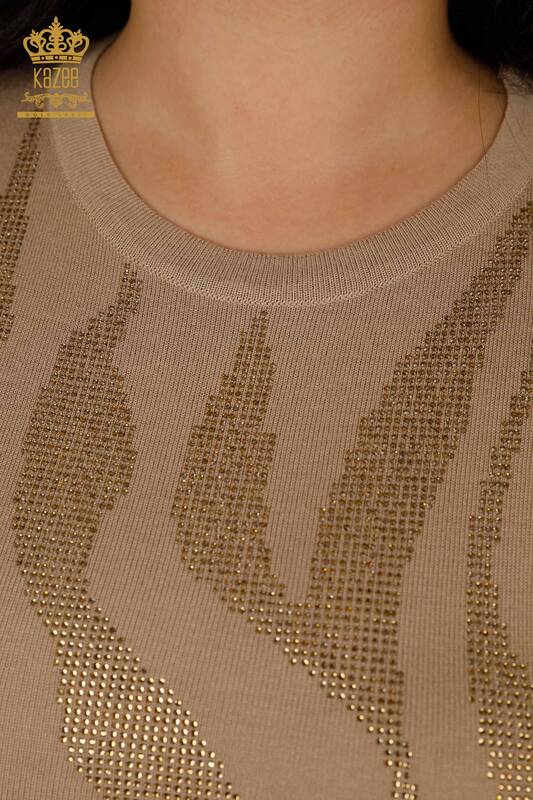 оптом женский трикотаж свитер с вышивкой камнем с длинным рукавом бежевый - 16728 | КАЗЕЕ