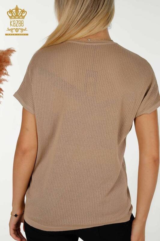 Toptan Kadın Triko Kazak Taş İşlemeli Bej - 30501 | KAZEE