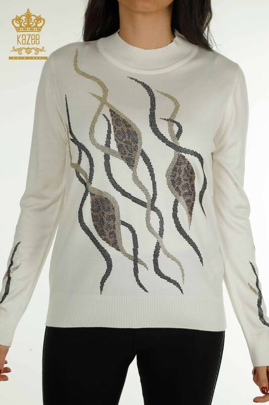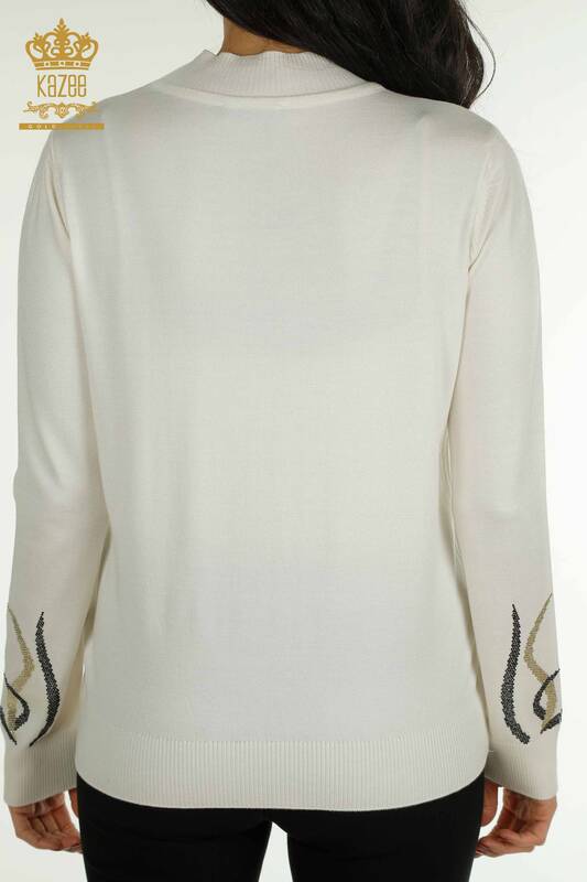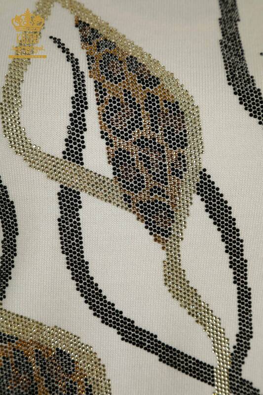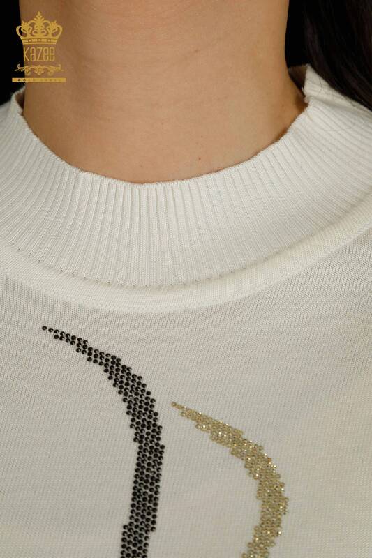 Toptan Kadın Triko Kazak Taş İşlemeli Ekru - 30096 | KAZEE