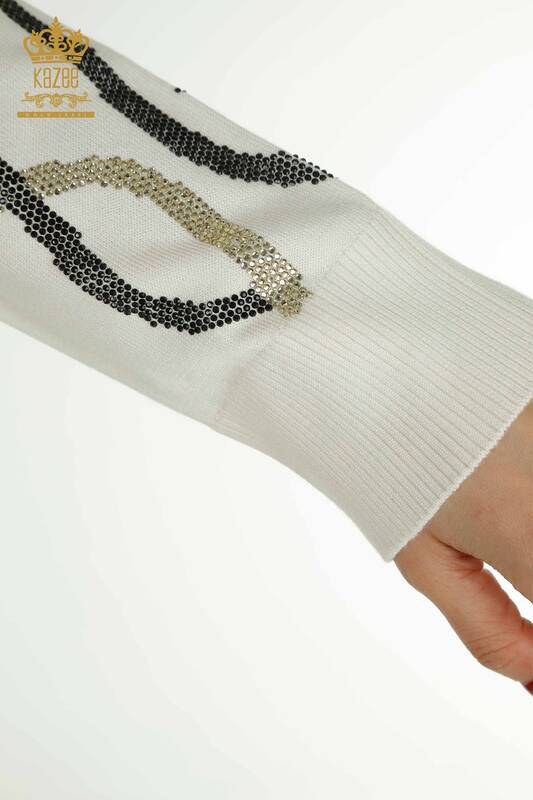 Toptan Kadın Triko Kazak Taş İşlemeli Uzun Kollu Ekru - 30096 | KAZEE