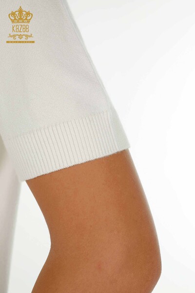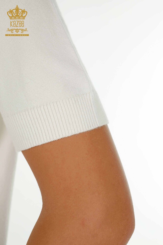 Großhandel Damen-Strickpullover mit Stone-Stickerei, kurzärmlig, Ecru – 30318 | KAZEE