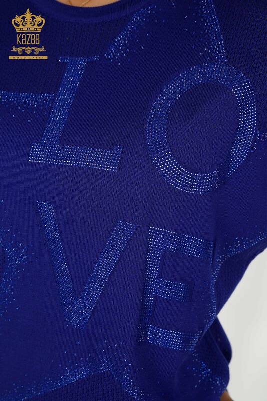 Toptan Kadın Triko Kazak Taş İşlemeli Saks - 30501 | KAZEE
