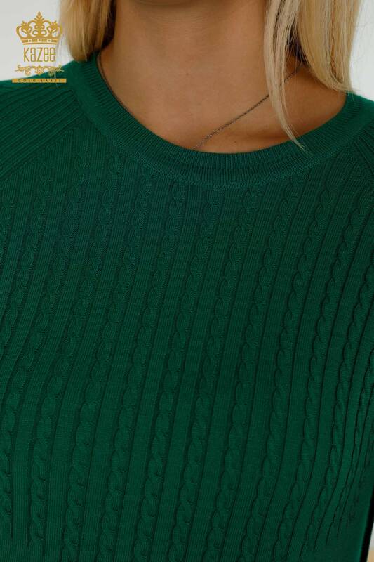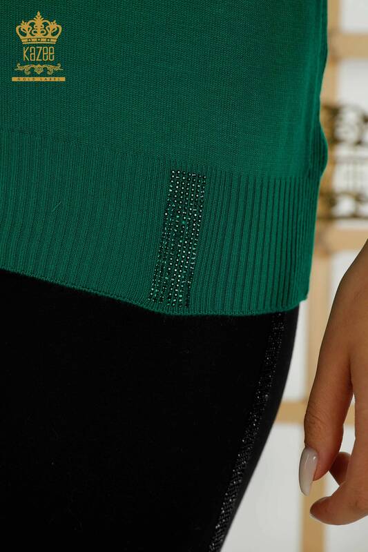 Toptan Kadın Triko Kazak Taş İşlemeli Dokumalı Yeşil - 30104 | KAZEE
