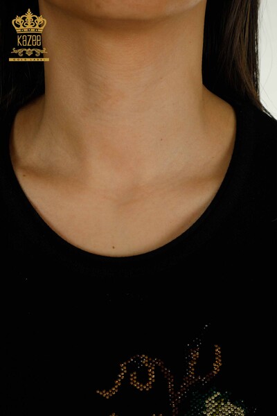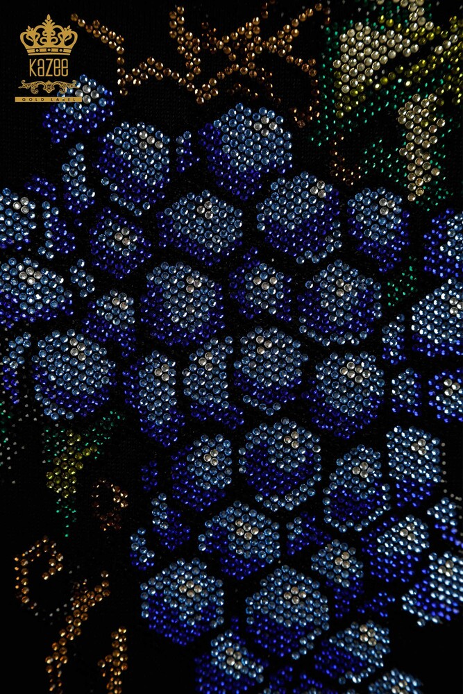 سترة تريكو نسائية بالجملة عنبية منقوشة بحجر أسود - 30488 | كازي