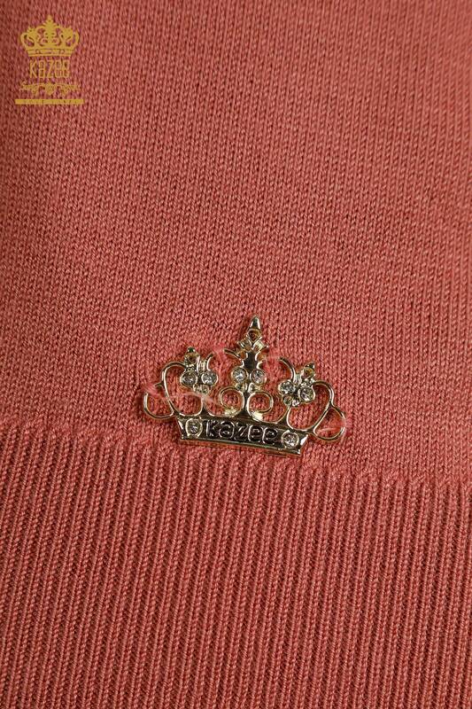 Wholesale Women's Knitwear Sweater Long Sleeve Basic Logo V-neck Dusty Rose - 11071 | KAZEE