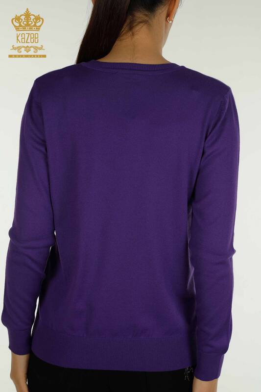 الجملة المرأة سترة تريكو كم طويل الشعار الأساسي الخامس الرقبة الأرجواني - 11071 | كازي